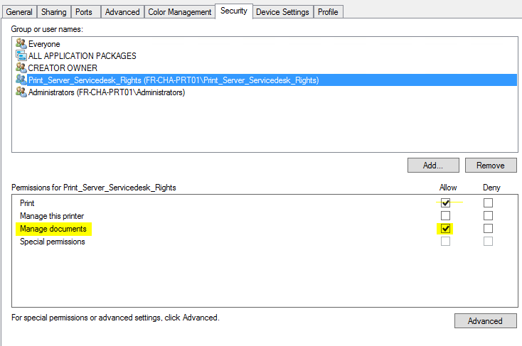 2 – Autoriser le groupe à gérer les documents d’une imprimante